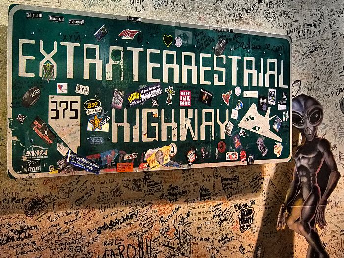 Extraterrestrial Hwy heisst der Ausserirdische Hwy hier so schön. Ziemlich ausserirdisch an diesem Tag war das Training der Air Force und seinen NATO Freunden. Red Flag nennt man dieses Training das wirklich ziemlich einmalig war. 30 Kampfflugzeuge sichtete ich zur selben Zeit. Die Überschallknalls dröhnten durch das ganze Tal und waren wirklich brutal laut. Oft waren die Jets im Tiefflug unterwegs. Ziemlich spukisch.