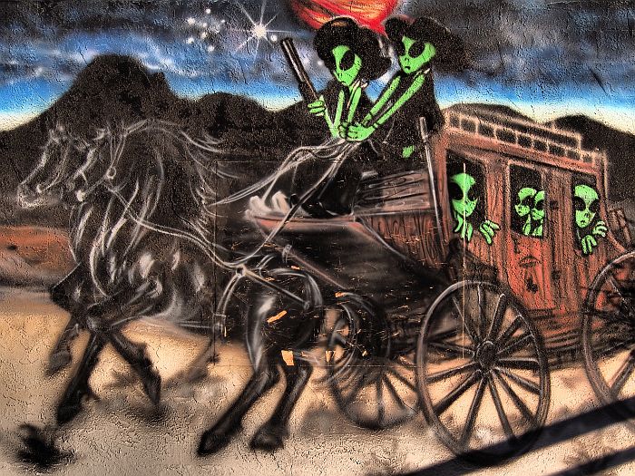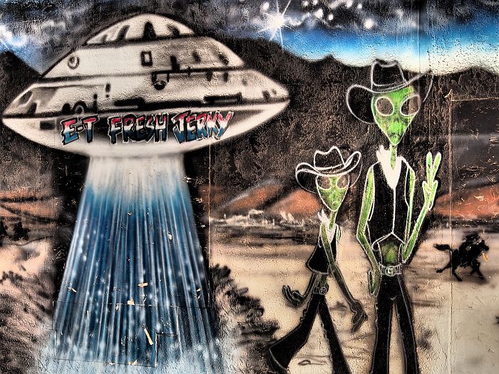 Die Gegend hier ist bekannt für UFO Sichtungen. Ich kann mir sehr gut vorstellen, dass es weiteres Leben irgendwo im All gibt, wie auch immer das aussehen mag. Aber dass Aliens die Technologie besitzen, uns zudem finden und vor allem den weiten Weg auf sich nehmen und dann auf der Erde nur mal eben kurz landen und nicht Hallo sagen ist wohl ein ziemlicher Quatsch.