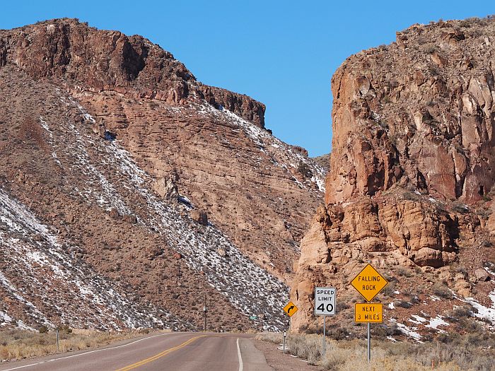 10 Meilen später kam ein kleiner Pass und danach war wieder alles schneefrei und es hatte sicherlich 20 Grad mehr. Wahnsinn. Diese Temperaturschwankungen sind wirklich extrem.