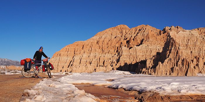 Dawn, die Rangerin des Parks war völlig begeistert darüber, dass ich den Park auch im Schnee mit dem Rad besuchen komme. 1$ zahlt man hier als Radler – anstelle wahnsinnige 15$ im Zion NP.